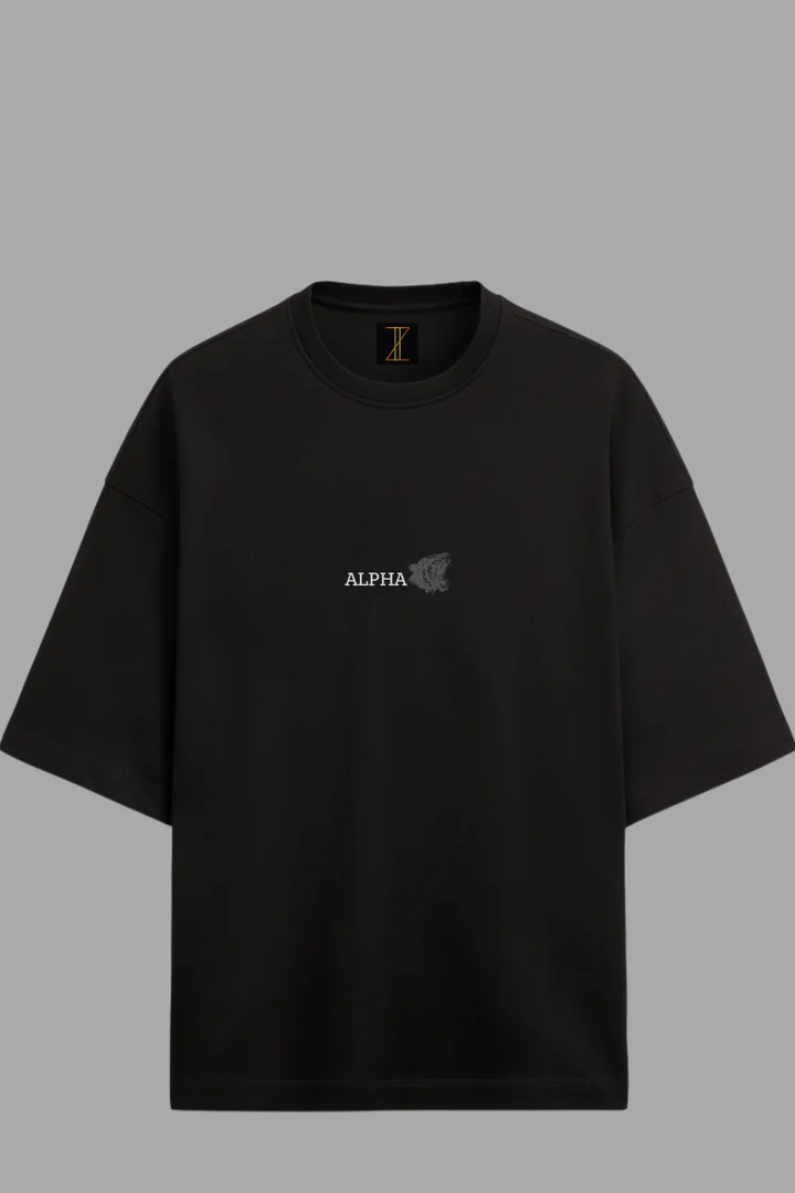 On the front, the tee features a minimal "ALPHA" word print paired with a subtle tiger icon—symbolizing leadership, dominance, and confidence.