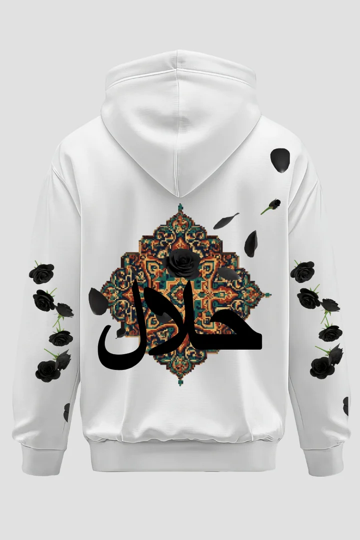 Step into meaning and modernity with THE ZAINLY’s Halal Bloom Oversized Hoodie, where Arabic calligraphy meets streetwear art. Featuring the elegant “حلال” (Halal) script blended with black rose motifs, this hoodie celebrates faith, freedom, and fresh urban design. Crafted from premium heavy cotton fleece, it’s soft, warm, and tailored for both men and women who want to wear their beliefs in style.