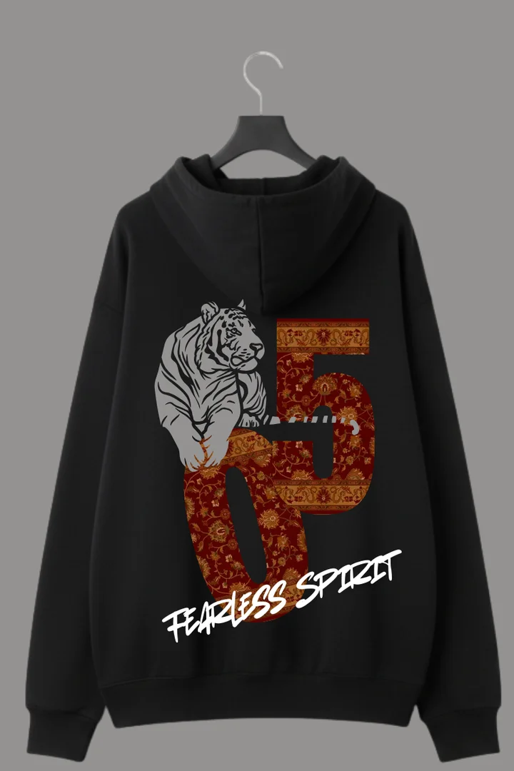 The highlight of the hoodie is the large, high-definition tiger illustration on the back — detailed, aggressive, and designed to grab attention instantly. Tigers symbolize strength, leadership, courage, and fearlessness. Pairing it with the “Fearless 05” print makes this hoodie perfect for men who believe in standing strong through anything.